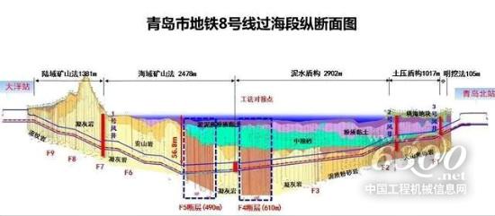 1月20日上午,服务于青岛地铁8号线大洋站-青岛北站东侧过海段的“中铁R124号”泥水平衡盾构机破土而出,标志着全长5.4公里的青岛地铁8号线过海隧道顺利贯通,这也是目前我国穿越海底距离最长的地铁隧道。