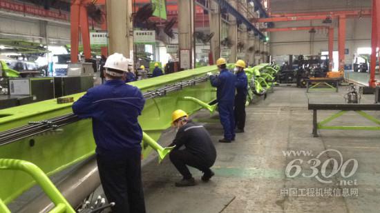 ▲中联重科混凝土机械分公司工人们在在做好防疫消毒的厂房有序生产