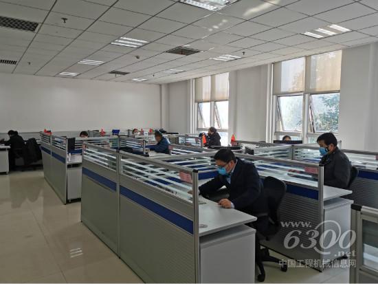 ▲中联重科工程起重机械分公司员工在消毒后的办公室工作
