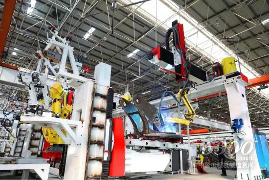 阀块机加是车间最先完成“灯塔工厂”智能化升级的模块,全新规划的柔性生产岛内,近100台协同机器人精准、有序运行。