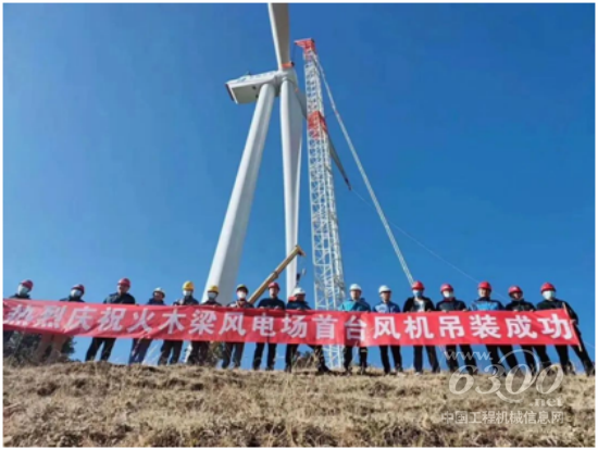 3月13日,云南牦牛坪风电场二期火木梁风电项目成功完成首台风机吊装,开创了国内100米以上轮毂高度分体吊装风机的先河。中联重科QUY650履带式起重机作为主力吊装机具,负责风机塔筒、机舱、叶轮等部件安装就位。在现场风速高达12米每秒的情况下,采用“分体吊装”技术,机架、传动链作为独立吊装模块,在100米高度完成机舱空中组装。据悉,该台风电机组,刷新了云南省风电机组最大功率等级纪录,成为西南地区单机容量最大、单台风机功率最大、风轮直径最大、陆上海拔最高的发电机组。