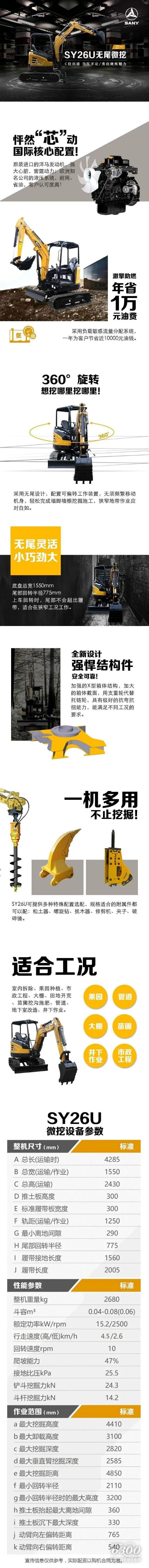 而三一微挖灵活性高、适应性强、效率高等诸多显著优点,越来越受到客户喜爱。为了满足广大用户需求,三一微挖经过技术革新隆重推出SY26U无尾微挖新品!
