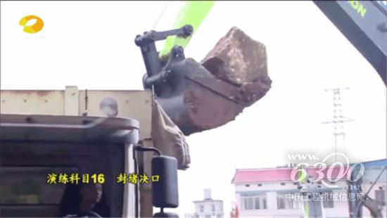 ▲中联重科重型工程机械应急救援队紧张有序地进行封堵决口