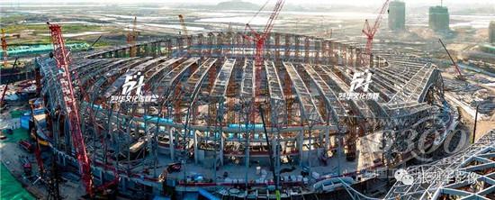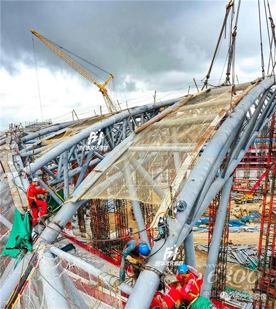 今年5月7日亚青会主场馆进行钢结构首吊,7月12日亚青会主场馆跨度最大的钢结构管件——巨型拱桁架启动吊装,经过中建八局南方公司建设者们近四个月的奋力拼搏,8月30日,随着最后一品桁架吊装拼接完成,宣告全部钢结构建设完成。