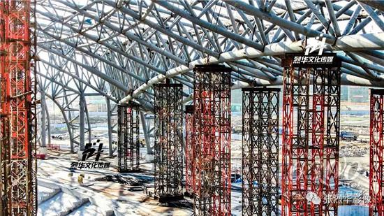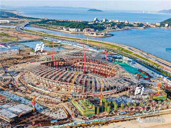 目前,“一场两馆”(体育场、体育馆、训练馆)二次结构砌体任务完成80%,室内精装修工作正大面积推进,金属屋面拼接安装工作即将启动,“飞舞的浪花”造型雏形已现,预制看台也开始吊装,训练场和会议中心主体结构施工接近尾声,室外工程正同步推进。