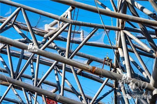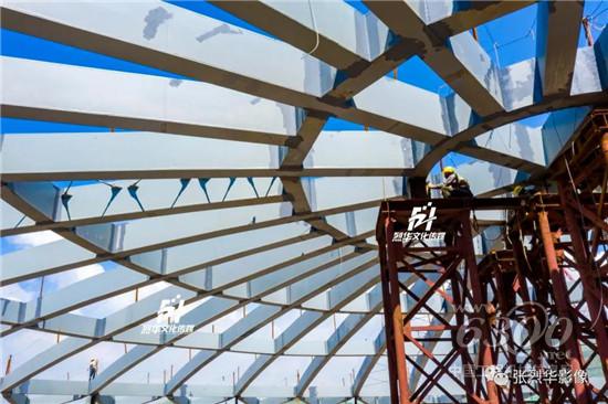 3个月来,亚青会主场馆网架杆件数量累计20000多根,焊缝长度超过26000米,相贯节点数量3624个,高峰期累计投入起重吊车30多台、劳务人员上千人,在确保工友安全的情况下进行24小时不间断施工,克服高温、暴雨、台风等不利因素,提前一个半月圆满完成施工任务。