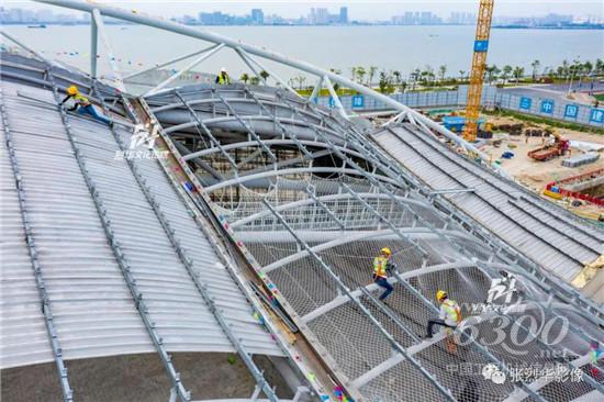 汕头游泳跳水馆屋顶,经过近20年的日晒风吹,其金属屋面构造层部分檀条防腐涂层存在开裂、脱落和锈蚀的现象,屋盖金属面板、保温材料、防水材料、金属穿孔底板、玻璃天窗及其托架也因年久而老化,无法满足相关体育赛事的需求。中建八局在保留原有设计外观的基础上进行改造升级。游泳跳水馆作为我市标志性建筑之一,其“贝壳卧滩、风帆临海”的精美造型寓意深长,远远望去,它像一艘鼓满风帆的航船停泊在充满生机的海湾,整个建筑蕴含极高的科技含量及设计匠心,屋顶拆除工作计划在本月内完成。