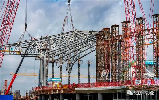 游泳跳水馆旧馆结构金属屋面拆除完成,四号馆地下室回填完成70%,五号馆底板垫层建筑完成60%,六号馆主体封顶,七号楼底板钢筋绑扎完成80%,八号楼承台垫层建筑完成40%,九号楼二层梁板钢筋绑扎完成30%,10号楼二层钢筋绑扎完成70%,11号楼三层钢筋绑扎完成20%。