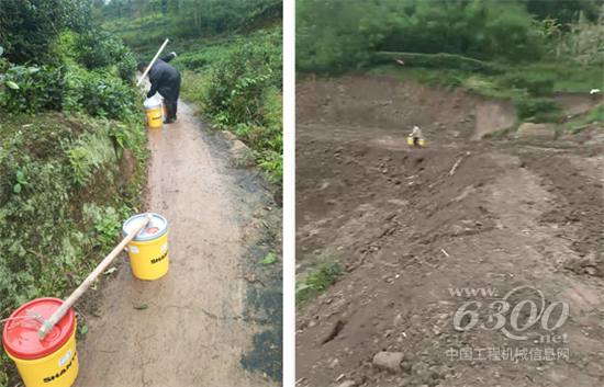 金秋的十月,淅淅沥沥的小雨一直不停,崎岖的山路,窄的地方不足1米宽,服务车根本无法顺利通过。眼看着全车的保养材料没办法运上工地,山推服务人员脑海中闪过一个想法“用肩挑”,说干就干,只见他们麻利地从车中拎出两根木棍和一捆绳子,三下五除二便做好了两副扁担。这样,三四个来回就能把所需物料挑到用户所在的工地。