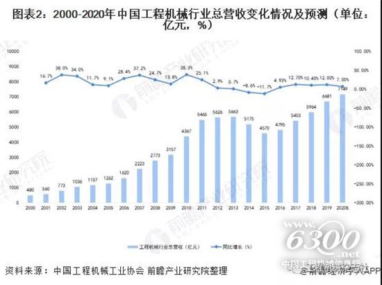 据中国工程机械工业协会在2020年9月发布的数据,全国12家重点工程机械企业完成销售收入2356亿元,同比增长了17.3%,全行业销售收入约为4000亿元;预计2020年行业营收增幅将达7%至8%。根据协会的相关数据和发展现状,前瞻预测2020年我国工程机械行业总营收将达到7149亿元左右。