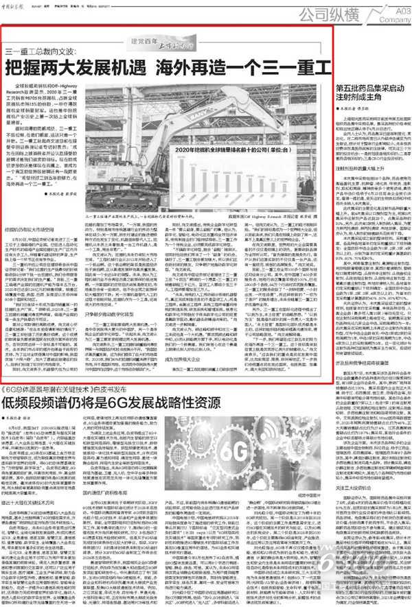 6月7日,《中国证券报》半版刊发三一重工总裁向文波接受专访文章。文章指出,面对三一挖掘机销量首夺世界第一的亮眼成绩,三一重工不曾松懈,在他们眼里,这还只是一个开始。