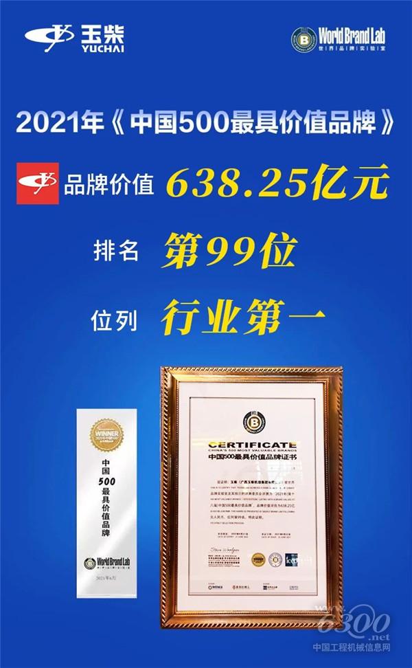 6月22日,世界品牌实验室在京发布了2021年《中国500最具价值品牌》分析报告。在这份基于财务数据、品牌强度和消费者行为分析的年度报告中,玉柴以638.25亿元的品牌价值位居榜单第99位,连续16年领跑内燃机行业。