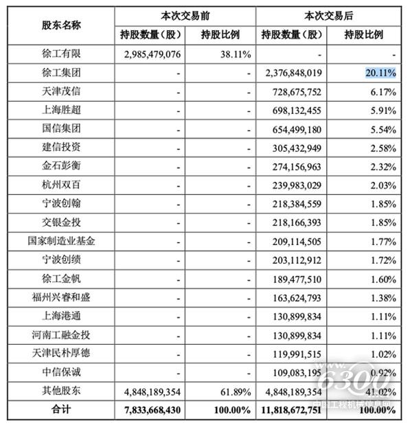 这次吸收合并,徐工有限的股东成为徐工机械的直接股东。