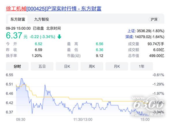 徐工机械昨日收报于6.37元,跌3.34%。总市值499亿元,半年报显示,徐工机械上半年实现净利润38亿元,同比增长84.5%。