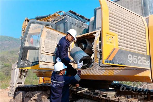 柳工售后服务人员为刘老板的挖机做保养
