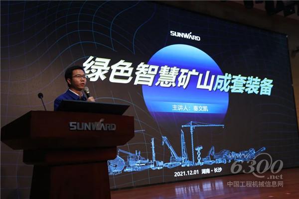△山河智能挖掘机事业部研究总院第一研究所所长秦文凯向客户介绍山河智能绿色智慧矿山成套装备。