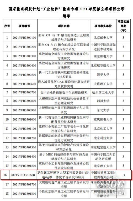 2. 铁建重工牵头国家重点研发计划“工业软件”专项项目;