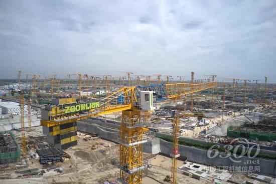 ▲中联重科群塔助力杭州西站项目建设