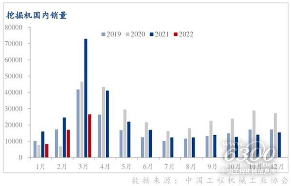 受疫情持续影响、房地产和基建工程开工率低迷等因素影响, 3月份工程机械的核心代表挖掘机销售不达预期,相比2月同比降幅持续扩大。