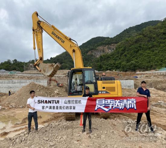 第二站,我们走访的是海南省三亚市崖洲区的麻先生,机型是山推SE215-9W。走访小组在沟通中得知,这个夏季,麻先生和他的挖掘机顶着烈日已经持续施工多日,看到服务人员的到来让他倍感欣慰,麻先生表示该设备动力相当强,并且还比较省油,零部件比较耐磨,无论从设备油耗、灵活性还是作业效率都要比外资品牌好,看着麻老板的笑容,服务人员也欣慰的笑了。