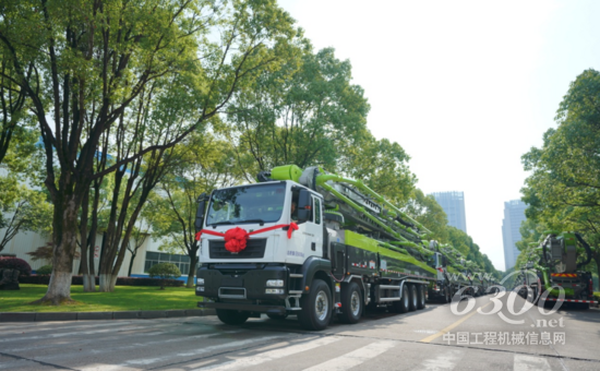 ▲整装待发的中联重科“凌云Ⅱ”系列泵车