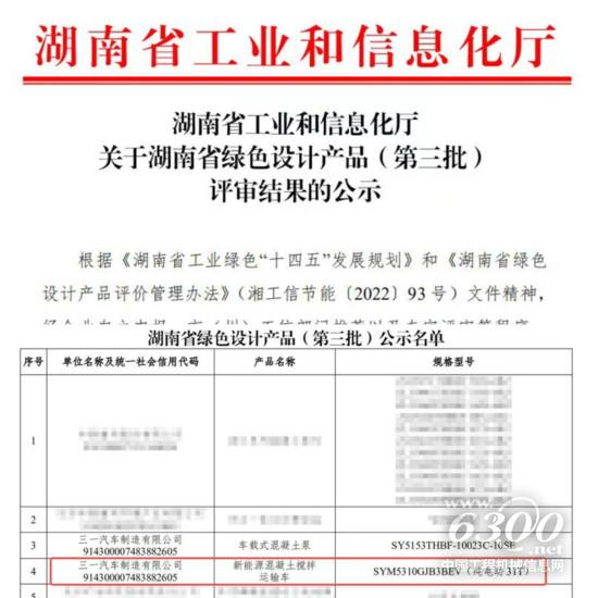 绿色标准引领绿色产品。近日,三一新能源混凝土搅拌车SYM5310GJB3BEV(纯电动 31T)和三一车载式混凝土泵 SY5153THBF-10023C-10SE入选了湖南省绿色设计产品(第三批)公示名单。