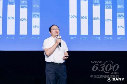 三一电动科技火力全开,三一电动科技副总经理魏长河向我们介绍此次全新发布的纯电、换电、混动、氢能、柴油、无人驾驶六大系列重磅车型,提供八大场景全系解决方案。全面展示了其加速绿色智能转型的实力,满电出发,开启企业进阶的全新征程。