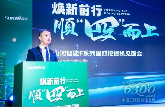 △山河智能挖掘机事业部总经理范峥嵘介绍F系列国四挖掘机研发历程。