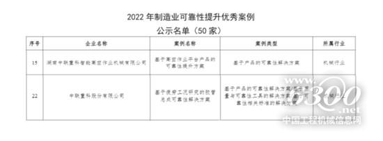 近日,工信部公示了2022年制造业可靠性提升优秀案例、关键过程能力提升优秀案例入围名单。其中,中联重科4个项目入选,可靠性提升优秀案例、关键过程能力提升优秀案例各两个,彰显了工信部对中联重科产品可靠性和关键过程能力提升效果的高度认可。