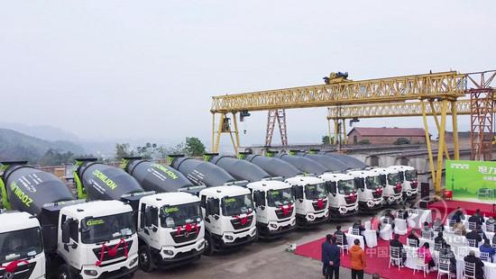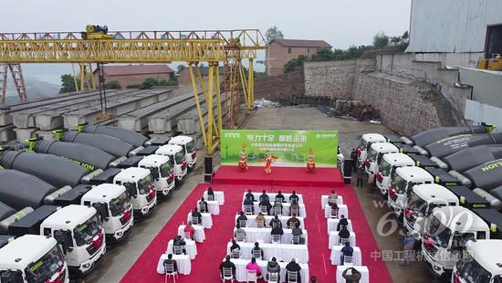 12月29日上午,20台中联重科充电式搅拌车头戴红花整齐列阵,批量交付宜宾华阳科技有限公司。冬日暖阳下,醒目的极光绿熠熠生辉,这批新能源匠心精品将以极致性能、强劲节能,为客户铺就绿色低碳的快速发展之路。