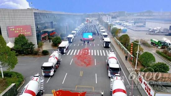 邵阳产业园,188台身披红花的搅拌车、自卸车排成了2公里长龙缓缓从厂区驶过,从厂门鱼贯而出,吸引大量市民驻足观看。