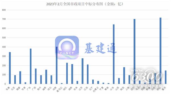 据基建通大数据统计:2023年2月全国市政类项目中标额约为5774亿,中标项目数量约4.4万个。其中浙江、四川、山东、河南、广东排前列。从这也可看出这几个省份的经济火热程度。