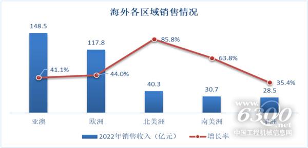 经多年布局,公司海外销售连年增长亮眼,实现了销售结构的显著转变。年报显示,2022年,欧美已成为三一在海外增长最快的区域。