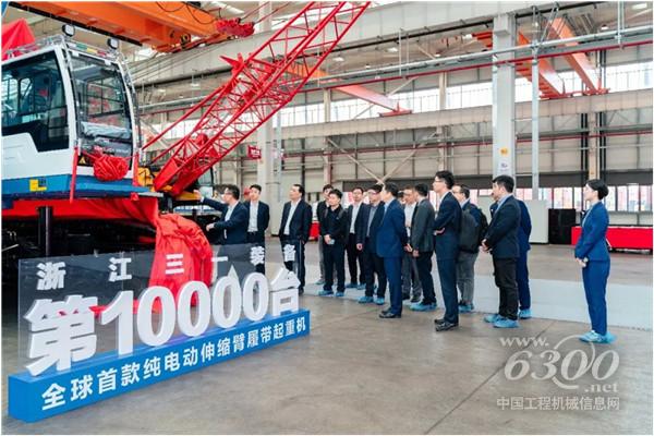 近日,三一湖州产业园生产的第10000台履带起重机在总装车间下线,达成新的里程碑。破万台的产品是一台SCE800TB-EV电动履带起重机,这是全球第一款纯电动的伸缩臂履带起重机,也是集“数智化、电动化、国际化”亮点于一身的代表作。