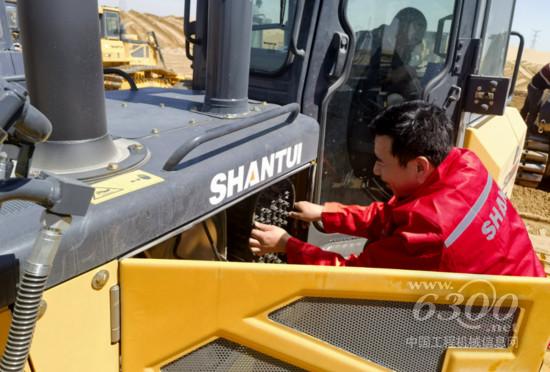 在走访时,施工单位对关爱行人员的到来表示赞扬,其中一位项目负责人这样说道:“我干工程机械也干了快30年了,可以说我是真真正正的见证了山推的成长与发展,我接触到的山推设备不计其数,从最早购买的山推SD13开始,就带着设备闯南走北,走遍了大半个中国,山推的设备性能那真是一个字“赞”,其他厂家的设备我也接触过,但是用来用去还是感觉用山推设备用的最舒服。山推的散热性、密封性,与沙漠地区的作业环境高度匹配,尤其是专用的船型带筋履带板,能够轻松在沙丘上快速回转,简直如履平地。现在我的儿子接替了我的事业,希望他能跟随着山推的步伐一起成长。我其实更想说的是山推的关爱服务真的是很贴心,总是想到了客户的前面,让我们在享受高质量产品性能的同时,更是享受到了当“上帝”的感觉。”