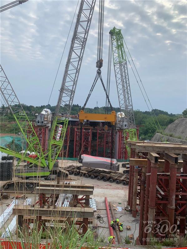 本次吊装的正是本项目最重要的350吨级铸件,由四川新路设备吊装工程有限公司旗下的中联重科履带起重机QUY650、ZCC5200S共同完成。
