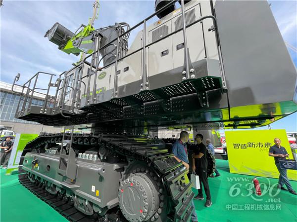 以ZE1250G挖掘机为例,其履带即有一人之高,庞大身躯和威猛气势吸引众多观众驻足观摩。“这是中联重科此次展出的最大挖掘机。作为新一代矿用挖掘机,该产品安装了定制化大功率发动机,搭载正流量控制液压系统,加强铲斗容量可达8立方米,工作效率相比上一代产品提高8%,单方油耗降低6%。凭借高效的挖掘效率,高可靠性和安全、省心的设计,ZE1250G成为广大矿山客户手中的‘掘金’利器”中联重科现场工作人员介绍道。