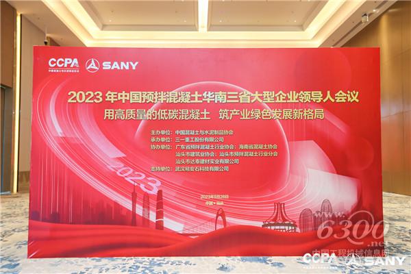 2023年9月26日,“2023年中国预拌混凝土华南三省大型企业领导人会议”在广东省汕头市召开。以“用高质量的低碳混凝士  筑产业绿色发展新格局”为主题,汇聚政府、协会领导、龙头代表、产业精英共100多为行业人士,就行业发展面临的重大共性问题进行研究、交换意见,并集思广益、凝聚共识。会议由中国混凝土与水泥制品协会大会主办,三一重工股份有限公司承办,中国工程机械信息网(miteho.cn)、《NEV新能源汽车观察》等行业主流媒体参加会议并提供矩阵全媒体资源支持。
