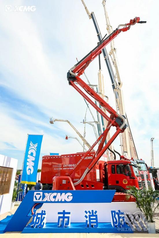 开幕式当天,徐工上市两款消防车产品。其中,第五次刷新“亚洲第一高”纪录的DG101登高平台消防车,集成徐工五大核心技术,在臂架强度、伸缩效率、微动性和安全性等方面全面升级。