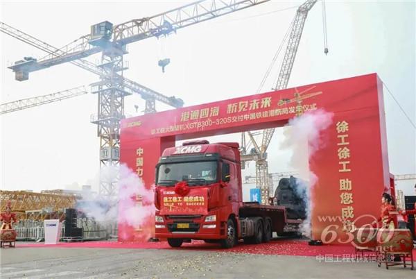 1月9日上午,港通四海 桥见未来——徐工超大型塔机XGT8300-320S交付中国铁建港航局发车仪式在徐工塔机徐州智能制造基地隆重举行。
