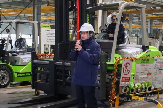 接着,总经理胡耀剑宣布中联重科10吨重装电动叉车产品下线!
