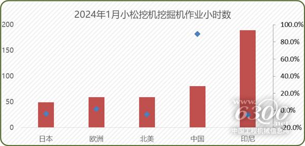 近日,小松官网公布了2024年1月小松挖掘机开工小时数数据。