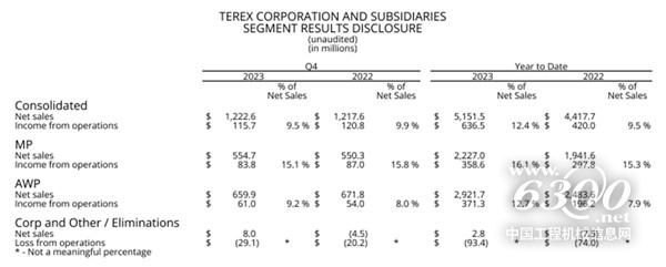 05 特雷克斯2023全年营收29.22亿美元