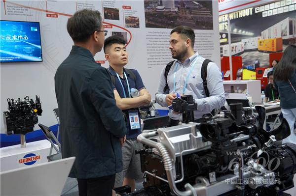 全柴动力展台工作人员与海外客户交流现场