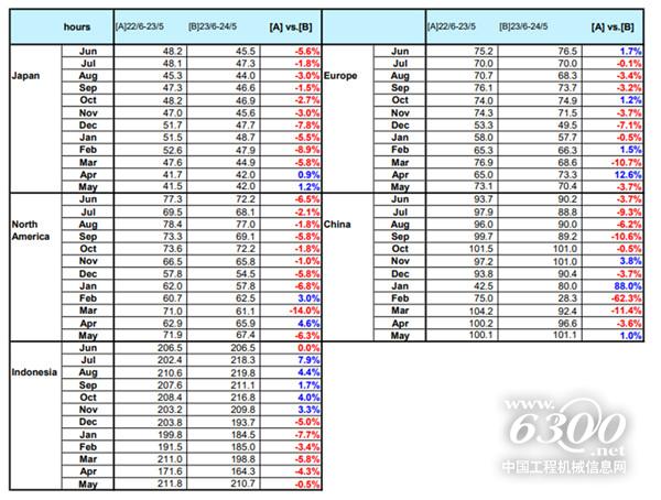 02 5月中国地区小松挖掘机开工小时数稳步增长