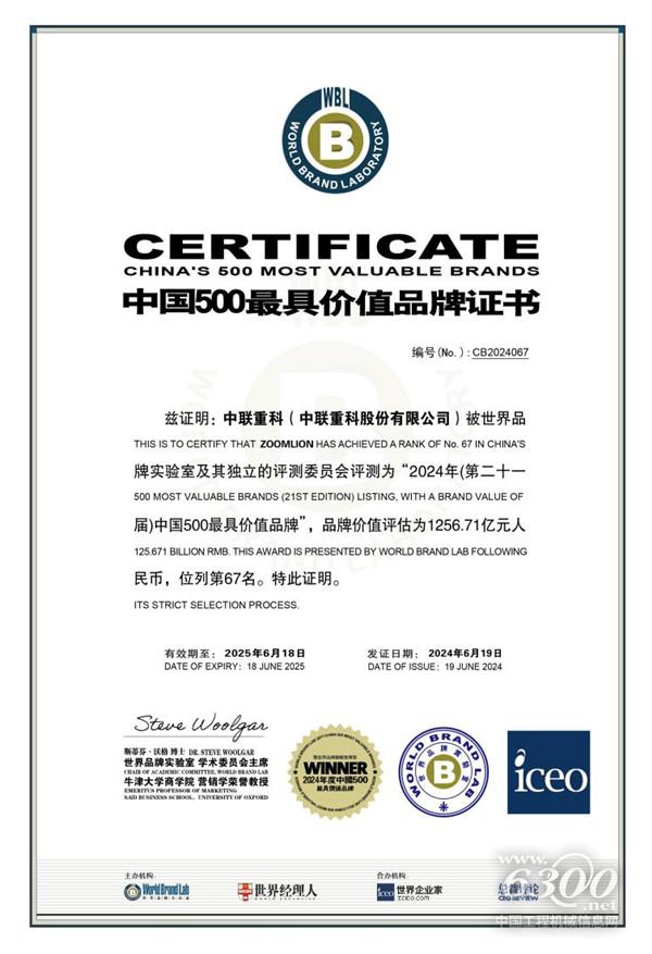 ▲中联重科上榜2024年《中国500最具价值品牌》