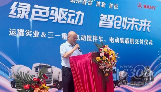 陕西三一董事长蒋鹏先生表示,电动化是工程机械发展的必然趋势,三一在“电动化”进程中一直走在行业前列,此次陕西运耀实业与三一携手,完成电动搅拌车及电动装载机的交付,为铜川市环保运输、智慧生产布局奠定了扎实基础,三一也将不遗余力与运耀实业共同助力铜川市实现绿色建设。