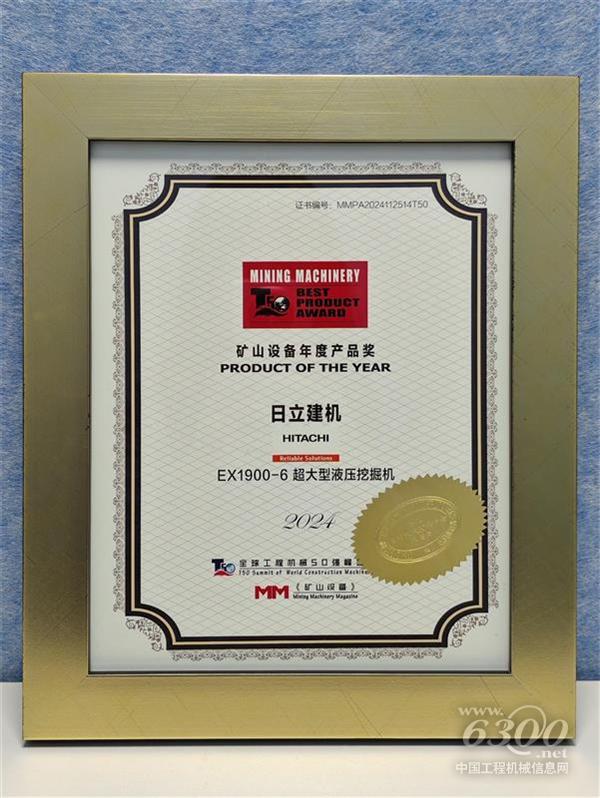 日立建机液压挖掘机EX1900-6荣获“2024矿山设备年度产品奖”称号