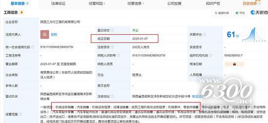 行业新动态来啦!据天眼查App显示,近日,陕西三力行工程机械有限公司成立,法定代表人为伍翔,注册资本200万人民币,经营范围含机械设备销售、汽车销售、机械设备租赁、零部件销售、汽车零配件零售、信息技术咨询服务等。