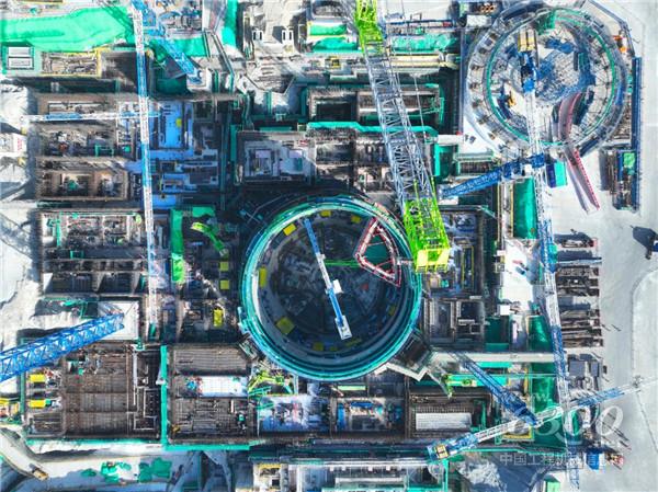 据悉,3RS非能动堆腔注水箱为堆腔冷却系统的重要组成部分,水箱为全封闭式扇形结构,建造过程中应用不锈钢覆面自动焊接技术、定制化支撑桁架、整体模块化施工工艺等前沿技术,通过中联重科2000吨级履带式起重机整体吊装就位。